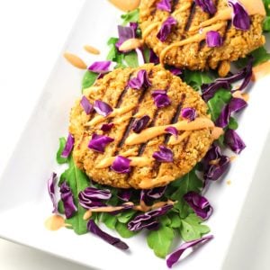 Just mix all of the ingredients in a bowl and form into 2 patties. I cooked these on my Cast Iron Grill Pan on the stovetop. If you don’t have a grill pan you can just use a frying pan.