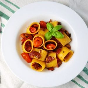 I hope you guys love this Calamarata with Bacon in a fresh Tomato Sauce (Gluten Free) as much as I did! It’s:
