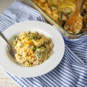 This Cheesy Chicken Broccoli and Rice Casserole is easy to make and is loaded with flavor! This is definitely a family favorite in our house.