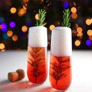 This seriously has to be the easiest cocktail I’ve ever made! Plus it looks super festive with the fresh Rosemary Sprigs, and the red color of the drink.
