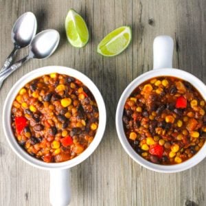 UPDATE! I’ve updated this recipe using an Instant Pot! So if you want to use this method, check it out here —–> Instant Pot Lentil and Black Bean Chili.