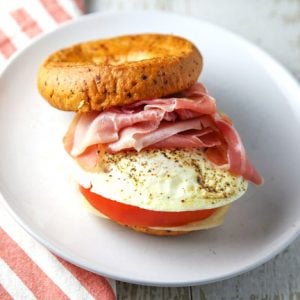 I hope you guys love this Prosciutto Provolone Tomato and Egg Breakfast Bagel as much as I did! They’re: