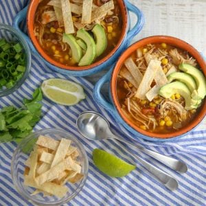 I like to top this soup with my homemade corn tortilla chips. But you could use store bought ones as well. Here’s some other topping ideas below!