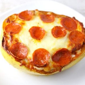 These Spaghetti Squash Pizza Boats are super fun to make! You can add any of your favorite pizza toppings you like! We made a pepperoni as well as a Margherita pizza.
